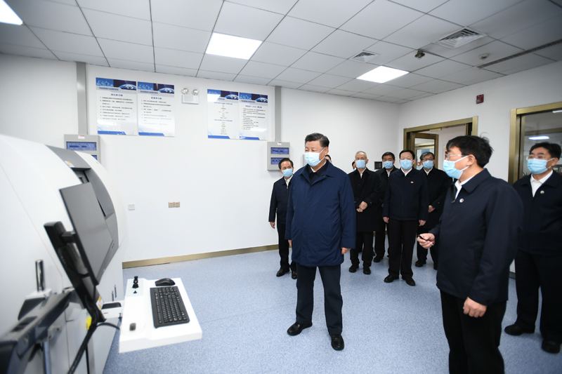 10月22日下午,中共中央總書記、國家主席、中央軍委主席習(xí)近平在山東省濟南市主持召開深入推動黃河流域生態(tài)保護和高質(zhì)量發(fā)展座談會并發(fā)表重要講話。這是座談會前,習(xí)近平21日下午在東營市勝利油田勘探開發(fā)研究院二氧化碳氣驅(qū)實驗室考察自主創(chuàng)新情況。新華社記者 李學(xué)仁 攝