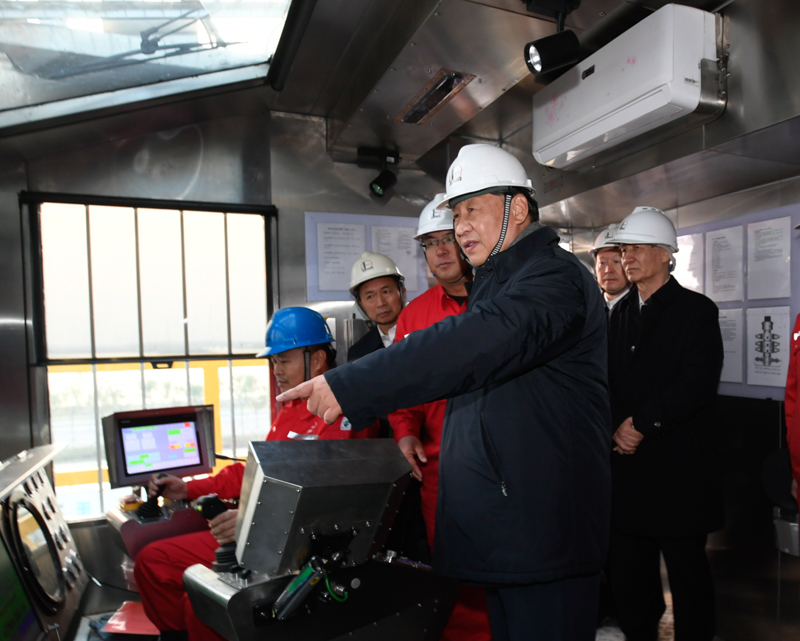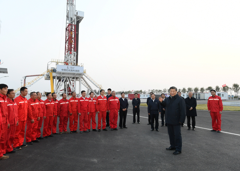 離開研究院,習(xí)近平來到位于東營市萊州灣的勝利油田萊113區(qū)塊,了解二氧化碳捕集、利用與封存技術(shù)研發(fā)應(yīng)用情況。他登上二層鉆井平臺,察看鉆井自動化設(shè)備,走進操作室,同正在作業(yè)的工人親切交流。今年是勝利油田發(fā)現(xiàn)60周年。習(xí)近平代表黨中央向為我國能源事業(yè)作出貢獻的石油工作者們表示崇高敬意。習(xí)近平叮囑大家繼承和發(fā)揚老一輩石油人的革命精神和優(yōu)良傳統(tǒng),始終保持石油人的紅色底蘊和戰(zhàn)斗情懷,為社會主義現(xiàn)代化建設(shè)事業(yè)作出更大貢獻。