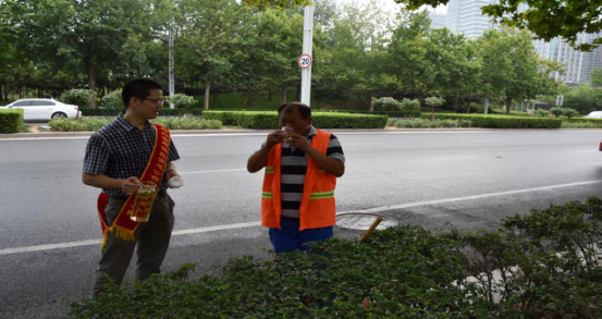 一、高溫送清涼,義務(wù)送水活動(dòng)。近日,持續(xù)的高溫席卷鄭州。即使是這樣的高溫天氣,環(huán)衛(wèi)工人仍頭頂烈日,堅(jiān)守在高溫一線,確保轄區(qū)內(nèi)整潔有序、干凈衛(wèi)生。7月14日上午,市建投公司黨員志愿者自備祛暑茶水,帶著水壺、水杯,慰問了酷暑中仍然堅(jiān)守在一線的鄭東新區(qū)環(huán)衛(wèi)工人,為他們送上了夏季“解渴水”,感謝高溫下堅(jiān)守崗位的他們?yōu)榄h(huán)衛(wèi)工作所付出的辛苦和汗水,并叮囑大家一定要加強(qiáng)防暑措施,注意安全。此次活動(dòng),不僅在這個(gè)夏天為一線環(huán)衛(wèi)人員送來了清涼,更彰顯了來自企業(yè)的愛心和責(zé)任。