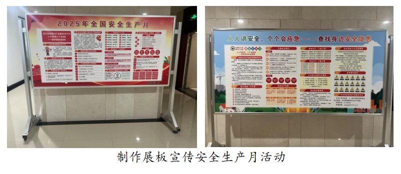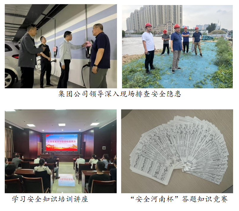 集團公司圍繞今年“人人講安全、個個會應急——查找身邊安全隱患”的活動主題,開展了安全知識培訓講座、現場隱患排查與治理、層層簽訂安全目標責任書、安全生產“對話談心”、“安全河南杯”知識競賽、安全宣傳咨詢日、布置展板和條幅宣傳安全知識等多項活動,通過推進“安全生產月”活動的進行,讓全體干部職工強化責任擔當、堅持底線思維、建立紅線意識。