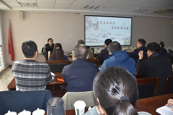 吳教授以《堅定文化自信,筑牢民族之魂》為題,圍繞文化自信的含義、牢牢掌握意識形態工作領導權、培育和踐行社會主義核心價值觀、繁榮發展社會主義文藝等四個方面進行了專題輔導。他認為文化自信是一個民族、一個國家以及一個政黨對自身文化價值的充分肯定和積極踐行,并對其文化的生命力持有的堅定信心。他歸納出讓中國人“自信”的“文化”,至少包括三個層面:中華優秀傳統文化、革命文化、社會主義先進文化。當前我們面臨的挑戰和困難前所未有,境內外敵對勢力插手意識形態斗爭的情況越來越復雜,形勢越來越嚴峻,多種勢力聯手,通過網絡、新媒體等各種手段,妄圖摧毀中國人的自信和共產黨的執政根基。我們要按照習總書記的要求,堅持黨管意識形態原則不動搖,進一步堅定共產主義理想信念,從我做起,從現在做起,在意識形態斗爭中做到對黨忠誠、個人干凈、敢于擔當,對一些意識形態的挑戰要敢于亮劍。